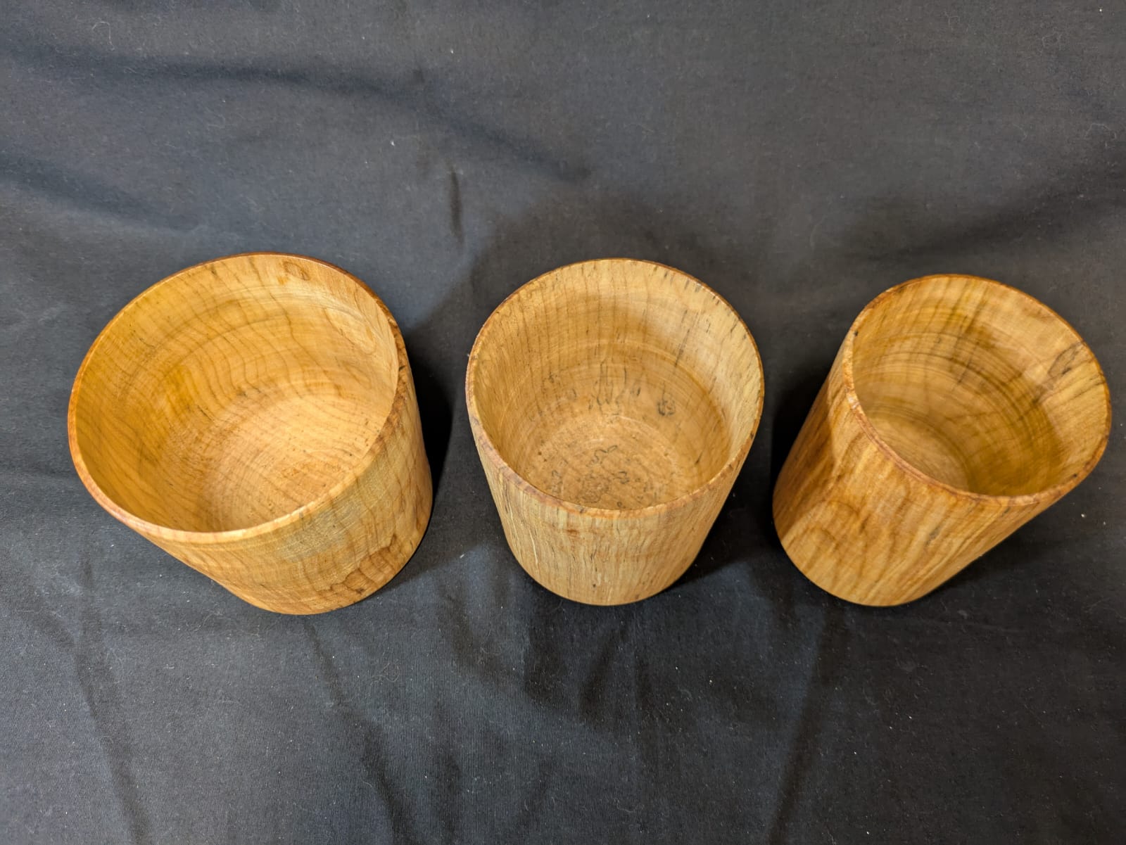 These lovely cups are turned from a 200 year old sycamore tree that came down in Storm Eowyn on my neighbours farm, thankfully missing everything on its way to the ground.